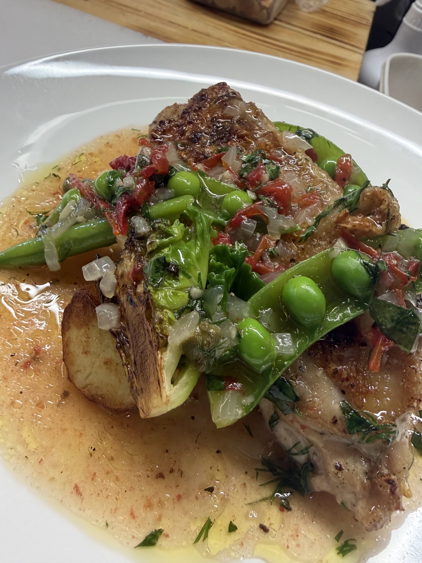 2026.03.19 ランチ フェニックスAランチ いっこく野州鶏の網焼き 柔らかく濃い味わいのいっこく野州どりを網焼きのして香ばしさをプラスソースにはチキンブイヨンにシェリーヴィネガーの酸味を加え、ドライトマトやケッパー、タイムやディールなど数種類のハーブを加えて仕上げました 店舗ブログ一覧